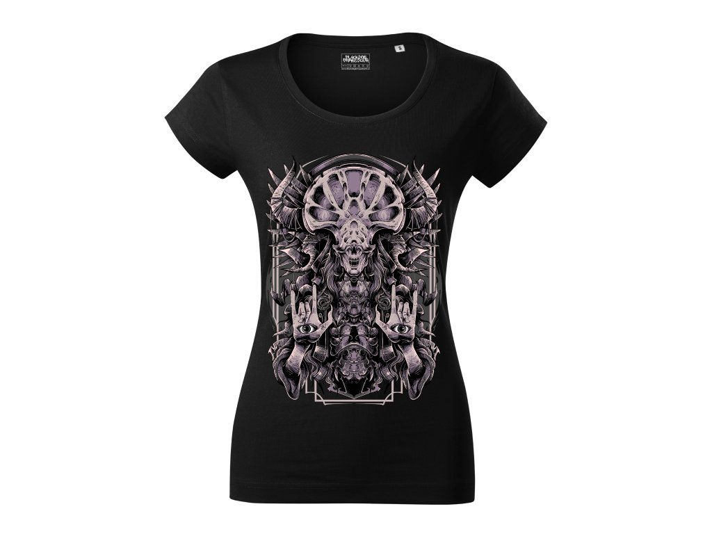 Dámské tričko s profesionálním potiskem značky Black dog brings death. Tričko zaujme svým jedinečným pojetím anděla smrti, které je důkladně propracované do posledního detailu motivu.