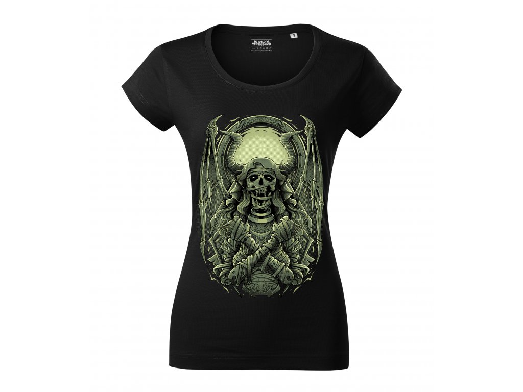 Dámské tričko s profesionálním potiskem značky Black dog brings death. Tričko si oblíbíte díky svému jedinečnému potisku ďábla se světlem mezi rohy. Tričko je vyrobeno ze 100% bavlny. Tričko má lehce vypasovaný střih s bočními švy, které zaručují správné padnutí na tělo. Vnitřní část průkrčníku je začištěna páskou z vrchového materiálu, ramenní švy jsou zpevněny páskou. Textilie je stálá, nedeformuje se ani po desítkách praní. Kvalitní barevný potisk zaručuje dlouhou životnost a stálost barev.